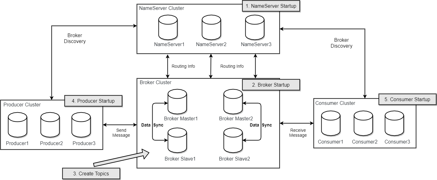 这里先把整个架构过一遍,不然后面讲 NameServer 的时候容易没有上下文。